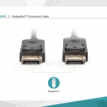 Betrouwbare DisplayPort-kabel (DP–DP) voor overdracht van digitaal beeld en geluid in een resolutie tot 4K bij 60 Hz. Dankzij de vergrendelingen op de connectoren blijft hij stevig in de poort zitten en is hij ideaal om een pc of laptop met een monitor met DisplayPort-interface te verbinden.