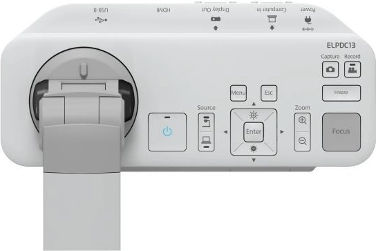 De lichte en draagbare visualizer EPSON ELPDC13 tilt lessen en presentaties naar een hoger niveau met Full HD-beeld, vloeiende video met 30 fps en 16× digitale zoom. Het grote opnamegebied A3, one-touch autofocus en geïntegreerde LED-verlichting zorgen voor perfecte leesbaarheid van details, of het nu gaat om leerboeken, 3D-objecten of beelden via een microscoop.