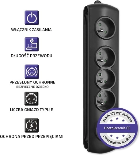 Breng orde in de bekabeling bij je bureau, achter de tv of in de werkplaats. Deze overspanningsstekkerdoos met 4 stopcontacten en een kabel van 2,5 m biedt voldoende bereik en ruimte om meerdere apparaten tegelijk van stroom te voorzien. De elegante zwarte uitvoering past in moderne interieurs en de stekkerdoos kan bovendien op meubels worden gemonteerd voor een opgeruimd werkblad. Geïntegreerde geleiding maakt het mogelijk om overtollige kabel op te wikkelen en orde te houden.
