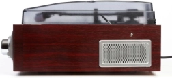 Stijlvolle retro platenspeler die zowel vinylfans als moderne luisteraars zal bekoren. Biedt afspelen van platen op 3 snelheden 33/45/75 tpm, een geïntegreerde radio, AUX-ingang voor het aansluiten van extra bronnen en ingebouwde luidsprekers. Uiteraard met een transparante stofkap en een elegant houten uiterlijk.