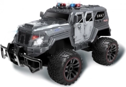 Ga op een avontuurlijke missie met de RC auto S.W.A.T. Police Pioneer. Dit vlotte model in schaal 1:12 biedt plezier in de tuin en op het trottoir en kan dankzij de constructie overweg met hoger gras. De zwaailichten en koplampen met instelbare modi geven de rit de sfeer van een politieactie.