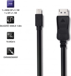 Kabel Mini DisplayPort naar DisplayPort 1.1, 1080p, 1,8 m