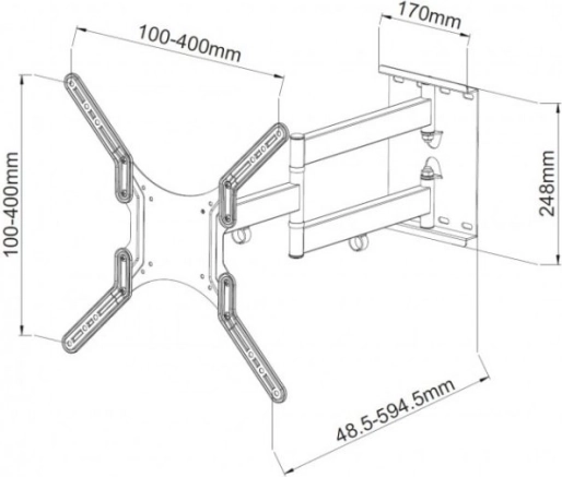 Verstelbare muurbeugel voor LCD/LED-schermen met een diagonaal van 23 tot 55 inch, ideaal voor het veilig bevestigen van tv’s aan de muur met maximale instelflexibiliteit en een elegant design.