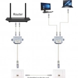 De installatie is zeer eenvoudig – sluit twee poorten van de switch/router aan op de eerste adapter, verbind met één kabel naar de tweede adapter en voer daaruit twee RJ45-poorten naar de apparaten (pc, printer, enz.). De afgeschermde FTP-uitvoering helpt storingen te beperken en een stabiele overdracht te behouden.