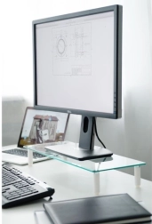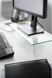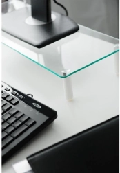 Glazen monitorstandaard stelt u in staat uw monitor in een ergonomische positie te plaatsen en tegelijkertijd meer ruimte op uw bureau te creëren. Dankzij het geharde veiligheidsglas en de antislip voetjes blijft de monitor stabiel.