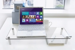 Ontdek de elegante glazen monitorstandaard die uw werkergonomie verbetert: