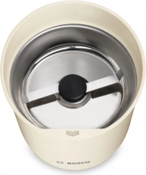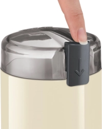 Maak kennis met de crèmekleurige koffiemolen, uitgerust met hoogwaardige messen van roestvrij staal die zorgen voor nauwkeurig en fijn malen. Het eenvoudige en veilige mechanisme zorgt ervoor dat de molen alleen werkt met gesloten deksel en is voorzien van een knop om onbedoeld inschakelen te voorkomen.