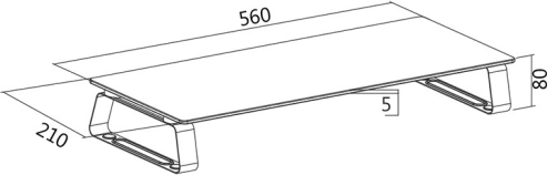 De afmetingen 560 × 210 mm bieden voldoende oppervlakte voor een monitor of laptop en tillen het beeld naar een comfortabele ooghoogte.