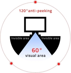 Het QOLTEC-privacyfilter voorkomt effectief ongewenste blikken van opzij, zodat de scherminhoud veilig blijft in open werkruimtes, onderweg of in klantomgevingen. Geavanceerde microlamellen zorgen voor comfortabel lezen recht van voren binnen circa 60°, terwijl het beeld al vanaf ~30° duidelijk verduistert en onleesbaar wordt. Het matte, antireflecterende oppervlak vermindert schitteringen en blauwlichtblokkering verlaagt oogvermoeidheid tijdens langdurig werk.