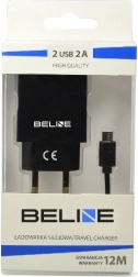 Betrouwbare netvoedingslader van BELINE met twee USB‑poorten en meegeleverde microUSB‑kabel die uw apparaten snel en veilig oplaadt. Dankzij de stroom van 2 A en slimme energieverdeling past het opladen zich aan de behoeften van telefoon of tablet aan. Het moderne design en beveiligingssystemen tegen overspanning en overladen zorgen elke dag voor veilig en efficiënt gebruik.