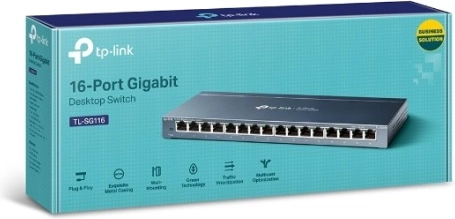 TP-Link TL-SG116 is een 16‑poorts gigabit switch voor thuis- en kantoornetwerken. Biedt snelle 10/100/1000 Mb/s verbindingen, plug-and-play zonder configuratie en energiezuinige technologie voor la... Meer tonen