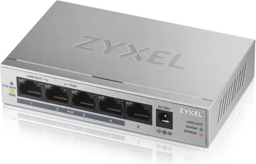 Zyxel GS1005HP: 5-poorts gigabit PoE+-switch met 60 W budget. 4× PoE+, plug-and-play, energiezuinig. Ideaal voor camera’s, AP’s en VoIP.
