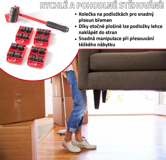 De set bespaart tijd en moeite bij kleine verhuizingen, schoonmaken en het herindelen van een ruimte. Til op, plaats, en verplaats – snel en zonder de vloer te beschadigen.