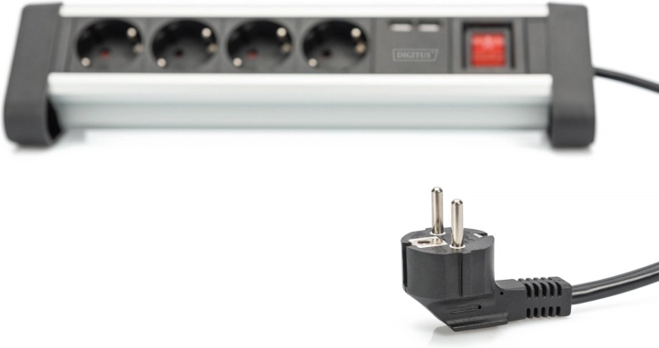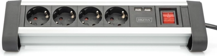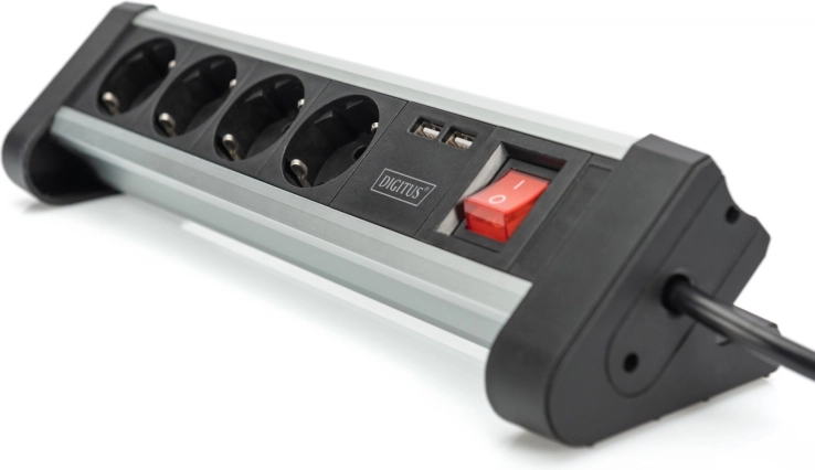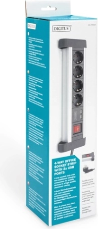 Vier stopcontacten en twee USB-poorten maken het mogelijk om meerdere apparaten tegelijk van stroom te voorzien en op te laden, ideaal voor moderne kantoorbehoeften.