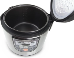 Multifunctioneel koken: Met deze multicooker kunt u uw favoriete gerechten sneller en gezonder bereiden. Dankzij het eenvoudige en intuïtieve LCD-scherm kunt u gemakkelijk kookfuncties instellen en de tijd aanpassen aan uw behoeften.