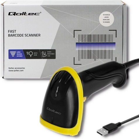 Qoltec barcodescanner biedt gebruikers het voordeel van snel scannen met een snelheid tot 200 scans per seconde. Dankzij de schokbestendigheid, met overleving van vallen van 1,5 m, is hij ideaal voor veeleisende werkomstandigheden. Hij leest barcodes onder verschillende hoeken, inclusief omgekeerde codes, en bevestigt correcte lezingen met een geluidssignaal.