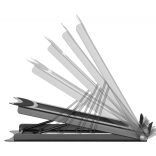 De praktische laptopstandaard bespaart niet alleen ruimte op uw bureau, maar verhoogt ook het werkcomfort. Dankzij de vijf niveaus van hoekverstelling past u de positie van uw laptop eenvoudig aan uw behoeften aan, waardoor nekklachten worden voorkomen. De open constructie ondersteunt de luchtstroom, wat zorgt voor koeling van uw apparaat en het beschermt tegen oververhitting.