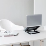 Opvouwbare laptopstandaard biedt comfort en ergonomie voor werken thuis en op kantoor. Dankzij de verstelbare constructie kunt u de kijkhoek aanpassen en is optimale ventilatie gegarandeerd.