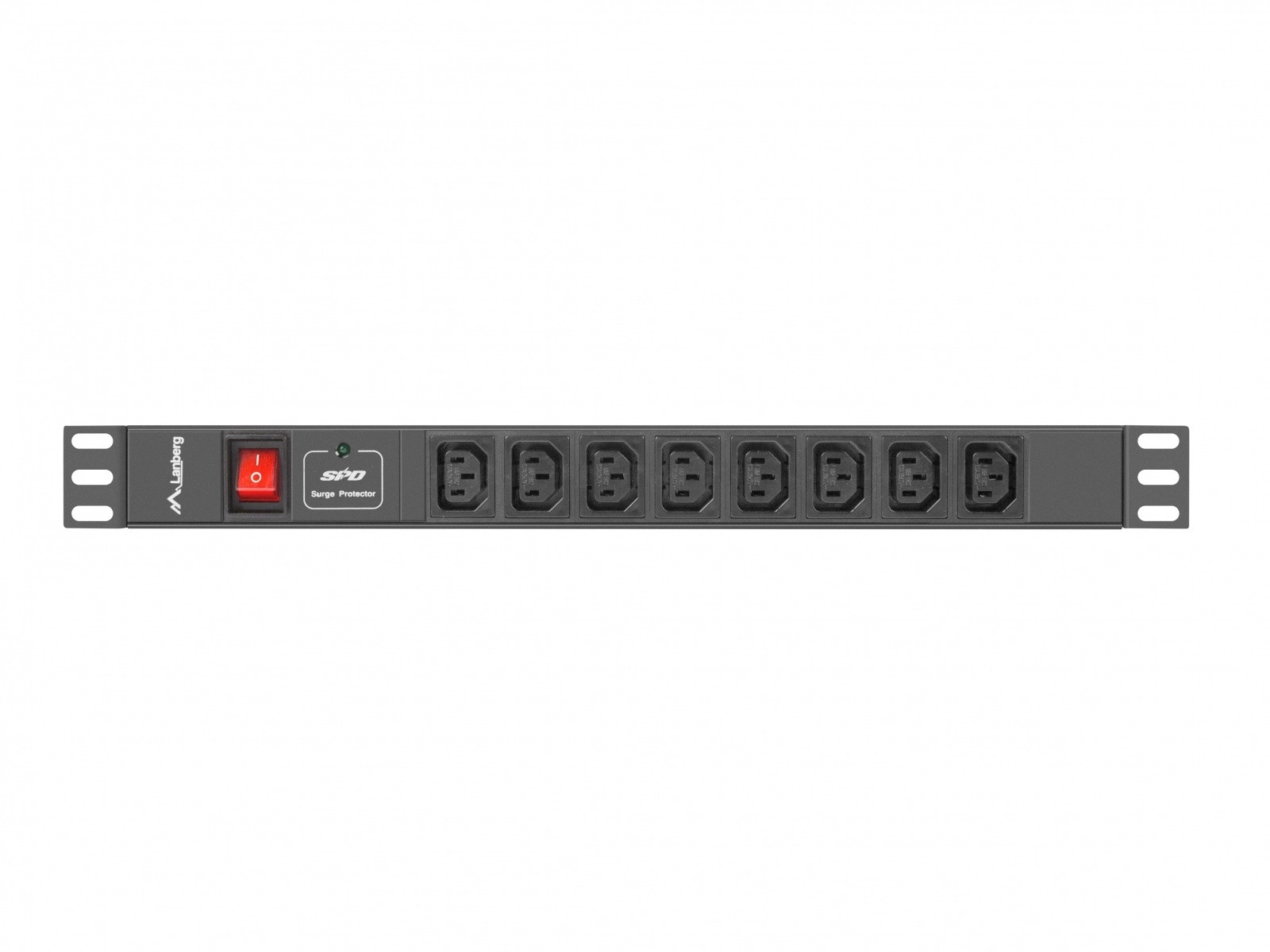 Lanberg rack-stroomverdeler PDU 19" 1U, 16 A, 8× IEC C13, ingang IEC C20, kabel 2 m, zwart