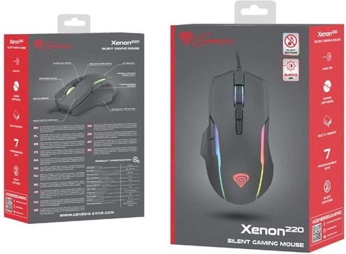 Gamingmuis GENESIS Xenon 220 met stille switches en RGB-verlichting, 6400 DPI