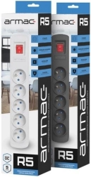 Het nieuwe model uit de R5-reeks overspanningsstekkerdozen van Armac biedt een universele en compacte oplossing voor de beveiliging van uw elektrische apparaten. Dankzij de mogelijkheid tot montage op een ondergrond en de geringe ruimtebehoefte is hij geschikt voor zowel huishoudens als kantoren. Een krachtige varistor met een reactietijd tot 25 nanoseconden beschermt apparaten tegen gevaarlijke spanningspieken tot 6000A. De stekkerdoos is uitgerust met vijf geaarde stopcontacten, een snelle automatische zekering en beschermkappen voor de stopcontacten.