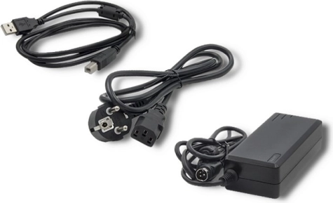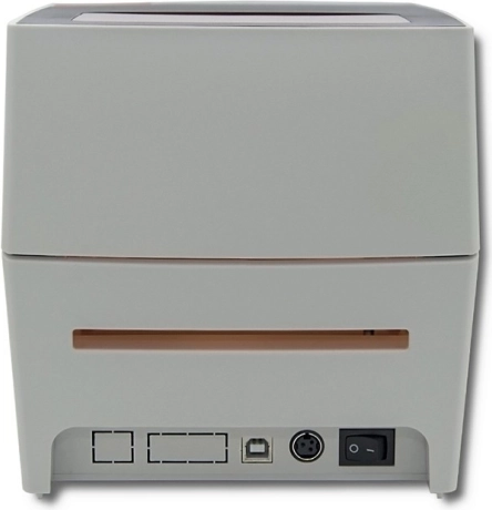 De printer biedt veel aansluitmogelijkheden, inclusief connectoren en een schakelaar, voor eenvoudige koppeling met andere apparaten, ideaal voor desktopgebruik.