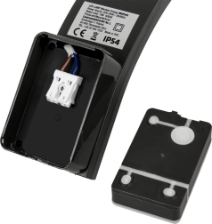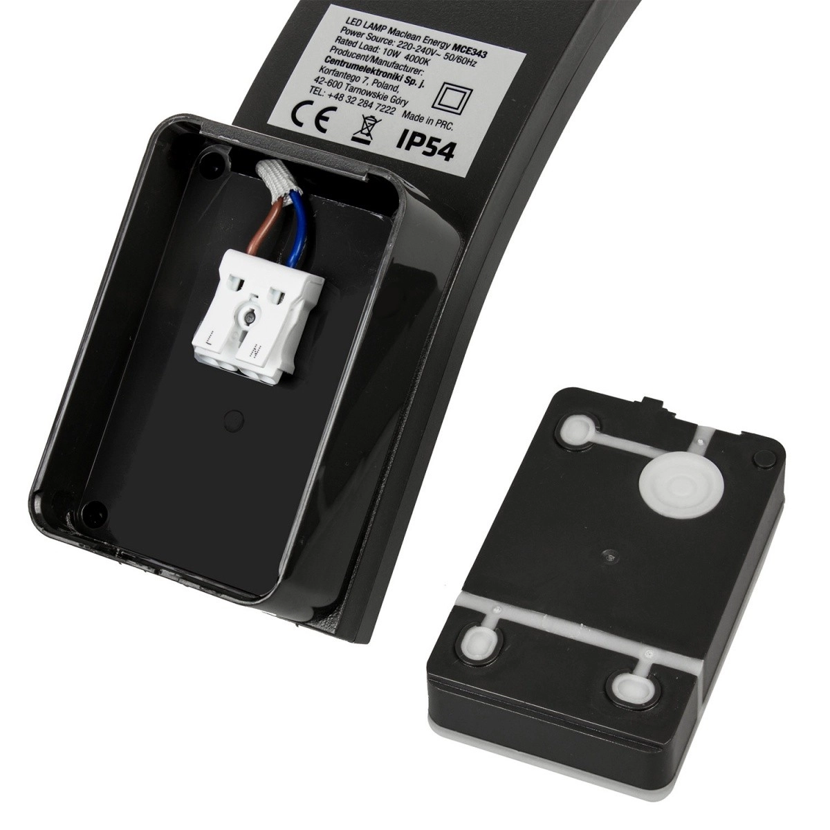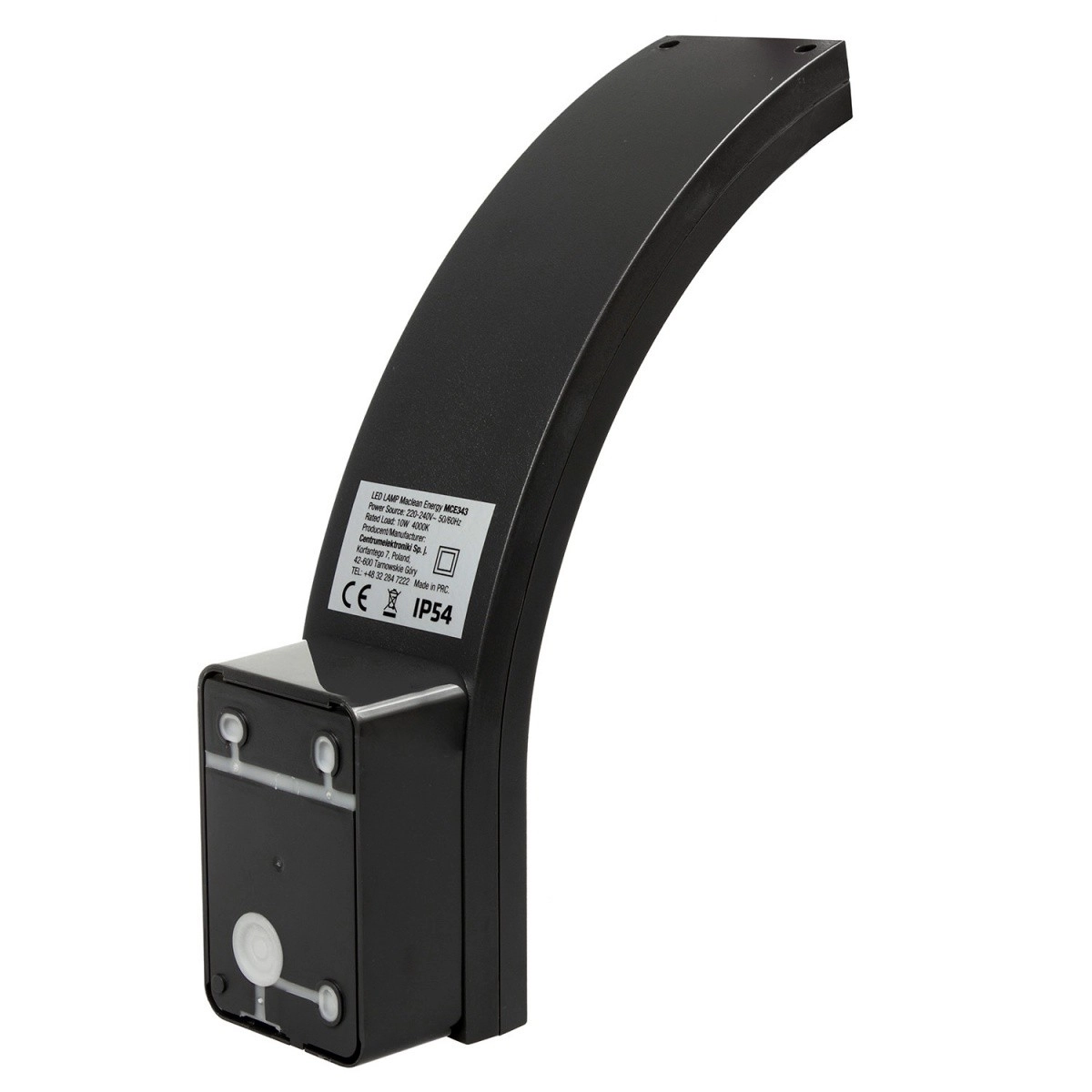 Hoogwaardige, energiezuinige, stijlvolle LED-gevellamp in het zwart. De lamp kan worden gebruikt voor het verlichten van huizen, binnenplaatsen, opritten naar garages, werkplaatsen, parkeerplaatsen, magazijnen of winkelvitrines.