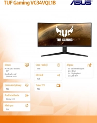 Monitor 34" VG34VQL1B UWQHD 21:9 1500R 165Hz 1MS HDMIx2 DPx2 USB3.1x4 Luidspreker PBP PIP