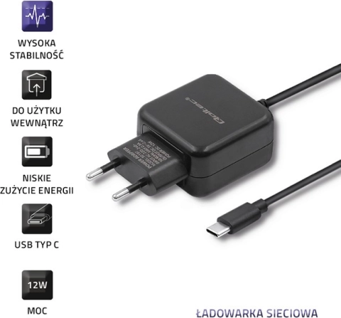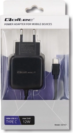 Betrouwbare netlader QOLTEC met een vermogen van 12 W (5 V / 2,4 A) voor snel en veilig opladen van telefoons en tablets. In de verpakking zit een USB‑C-kabel. De lader biedt beveiliging tegen overspanning, overbelasting, kortsluiting en oververhitting, hoge efficiëntie en laag energieverbruik – ideaal voor thuis en op kantoor.