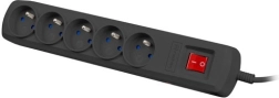 Overspanningsbeveiligde verlengdoos NATEC Bercy 400, 5 stopcontacten, 3 m, zwart