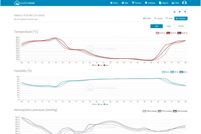 - Temperatuur, luchtvochtigheid, wind, neerslag, luchtdruk (afhankelijk van aangesloten sensoren)