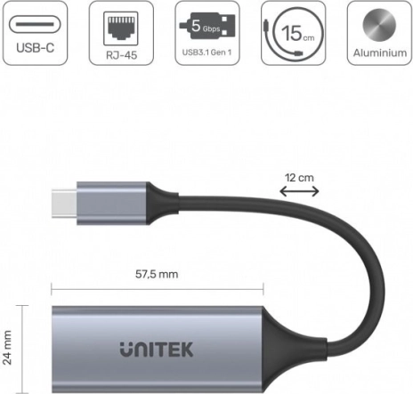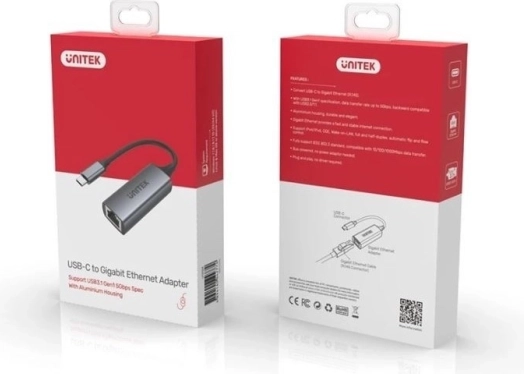 Heb je een betrouwbare en snelle netwerkverbinding nodig? De compacte USB‑C‑naar‑RJ45-adapter van UNITEK voegt aan je laptop gigabit‑ethernet 1000 Mb/s toe via USB 3.1 Gen 1. Biedt een stabiele bekabelde verbinding, ondersteuning voor 10/100/1000 Mb/s en energiespaarmodi in een robuuste behuizing van aluminium.