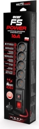 De Acar F5 Power is de versterkte 16A-versie van de populaire beschermde stekkerdozen uit de acar-AXON familie. Met een lengte van nog geen 33 cm biedt hij vijf geaarde stopcontacten in een praktische, duurzame behuizing. De versterkte netschakelaar is ontworpen om hoge stroompieken te weerstaan, zoals die optreden bij het inschakelen van desktop-pc’s of laptopadapters.