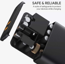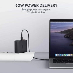 De AUKEY PA-D5 is een moderne netlader met GaN-technologie, die hogere efficiëntie in een compacter formaat biedt. Bij aansluiting van één apparaat levert hij tot 60 W voor snel opladen van laptops, tablets en telefoons. Bij gebruik van beide USB‑C-poorten verdeelt het slimme Dynamic Detect-beheer het vermogen bijvoorbeeld als 45 W + 18 W voor gelijktijdig opladen van laptop en smartphone.