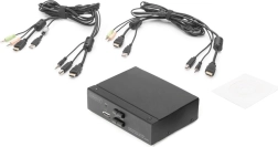 Digitus 2-poorten HDMI KVM schakelaar stelt u in staat om twee PC's te bedienen vanaf één toetsenbord en muis en biedt tegelijkertijd ondersteuning voor 4K resolutie. Met een eenvoudige druk op de knop of sneltoets kunt u gemakkelijk schakelen tussen de twee computers zonder de kabels te hoeven beheren.