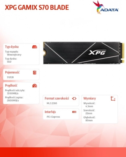 Til de snelheid van je systeem naar een hoger niveau met de XPG GAMMIX S70 BLADE. De PCIe 4.0 x4-interface (NVMe 1.4) zorgt voor bliksemsnel laden van games en apps en soepele videobewerking. Achterwaartse compatibiliteit met PCIe 3.0 garandeert probleemloze inzet ook in oudere systemen.