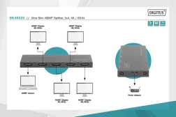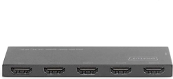 De compacte DIGITUS HDMI-splitter verdeelt één HDMI-bron naar maximaal vier displays in 4K/60 Hz. Biedt volledige bandbreedte van 18 Gbps, ondersteuning voor HDR, 3D en HDCP 2.2, voeding via Micro-USB en een robuust ultraslank metalen design. Ideaal voor tv’s, projectoren en digital signage in 1×4-modus.