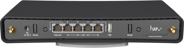 Op de behuizing vind je meerdere Gigabit Ethernet‑poorten voor snelle bekabelde verbindingen, een USB‑poort voor delen en statusindicatoren voor eenvoudige controle. Het compacte ontwerp met efficiënte ventilatie zorgt voor stille en betrouwbare werking.