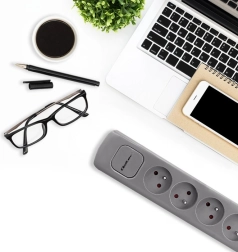 Vind een plek voor al uw apparaten met deze grijze verdeelstrip, die zes stopcontacten en een kabellengte van 1,8 meter biedt. Geschikt voor gebruik in huizen en kantoren waar efficiënte kabelorganisatie nodig is.