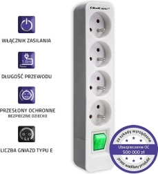 Dit verlengsnoer is ontworpen om te voldoen aan uw dagelijkse behoeften in huis of op kantoor, terwijl het elegantie en eenvoud biedt. Het wordt geleverd met 4 stopcontacten en een lengte van 1,8 meter, wat zorgt voor voldoende bereik. De verlichte Quick Switch-schakelaar maakt het gebruik nog gemakkelijker en stelt u in staat apparaten snel met één aanraking uit en in te schakelen.