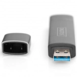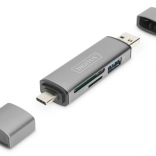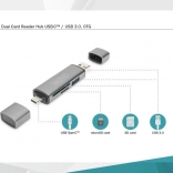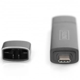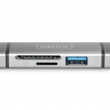 Kaartlezer met USB-hub van het merk Digitus maakt verbinding met smartphone, tablet of laptop voor eenvoudig toegang tot gegevensmedia zoals USB-sticks, SD- en MicroSD-kaarten. Dankzij het Plug-and-Play-ontwerp is geen extra installatie nodig.