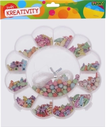 Deze creatieve set is ideaal voor zowel kinderen als volwassenen die van knutselen houden. Dankzij de gevarieerde reeks vormen en kleuren maak je eenvoudig armbanden, kettingen en kleine decoraties. De bloemenvormige verpakking is praktisch voor overzichtelijke opslag.