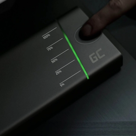 De powerbank zelf laadt in ongeveer 2 uur op van 0 naar 100%, zodat hij meteen klaar is voor gebruik. Dankzij de Pass-Through-functie fungeert hij als een lader met meerdere poorten – zowel de aangesloten apparaten als de powerbank worden gelijktijdig opgeladen. De energiestatus check je eenvoudig met een dubbele tik – de groene LED-strip licht op tot het overeenkomstige niveau.
