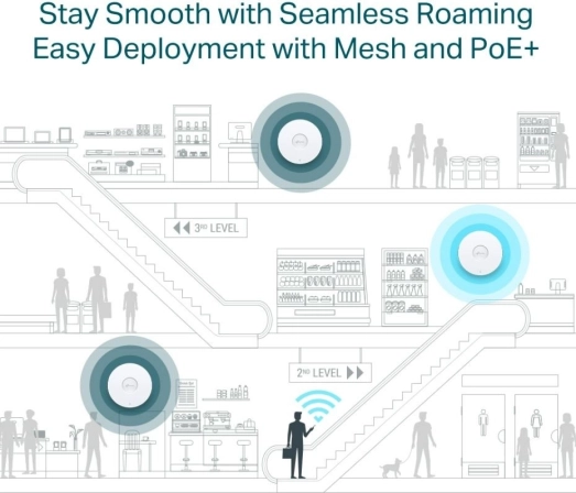 Ervaar razendsnelle Wi‑Fi 6‑snelheden met het TP-Link Omada AX3000 plafond‑accesspoint en hoogwaardige connectiviteit voor al je apparaten.