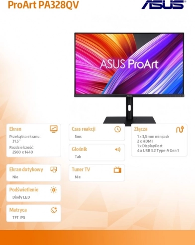 professionele 32" monitor ASUS ProArt PA328QV WQHD IPS met 100% sRGB en pivot