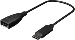 Voeding via de USB-poort van de laptop – geen externe adapter nodig. Er is een doorvoer-USB beschikbaar en in de doos vind je een kabel en een USB‑C → USB‑A adapter voor moderne apparaten.