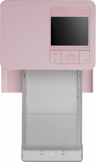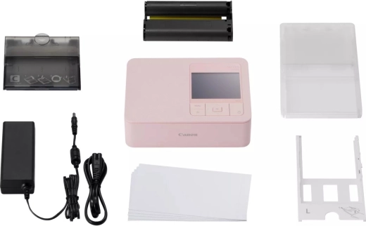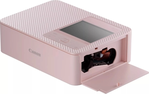 De SELPHY CP1500 in roze valt op door zijn moderne uitstraling en kleine afmetingen. Perfect voor op tafel en voor onderweg, altijd klaar om je favoriete momenten te printen.