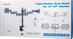 Geavanceerde universele houder van LogiLink voor drie monitoren van 13" tot 27", met flexibele instelling en stabiliteit voor een efficiënte werkomgeving.