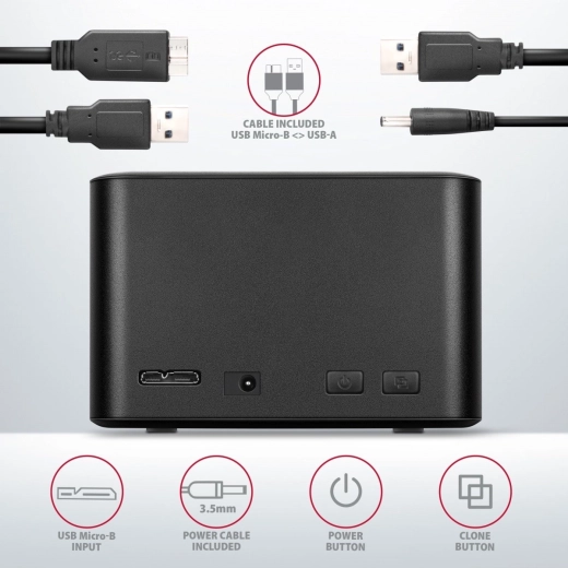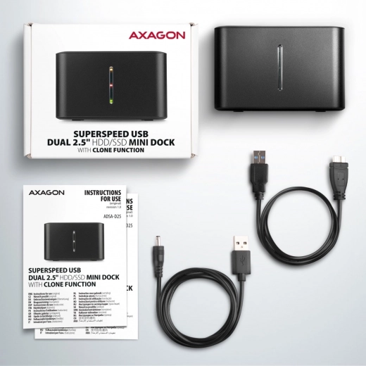 Mini-dockingstation Axagon voor 2x 2,5" SATA SSD/HDD met kloonfunctie