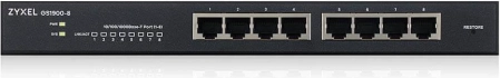 Compacte beheerde switch met acht gigabit RJ‑45-poorten biedt stille werking, volledige gigabitdoorvoer en eenvoudig webbeheer voor kleine en middelgrote bedrijven. De ideale upgrade van een unmanaged switch voor snelle en stabiele bedrijfsnetwerken zonder blokkades.